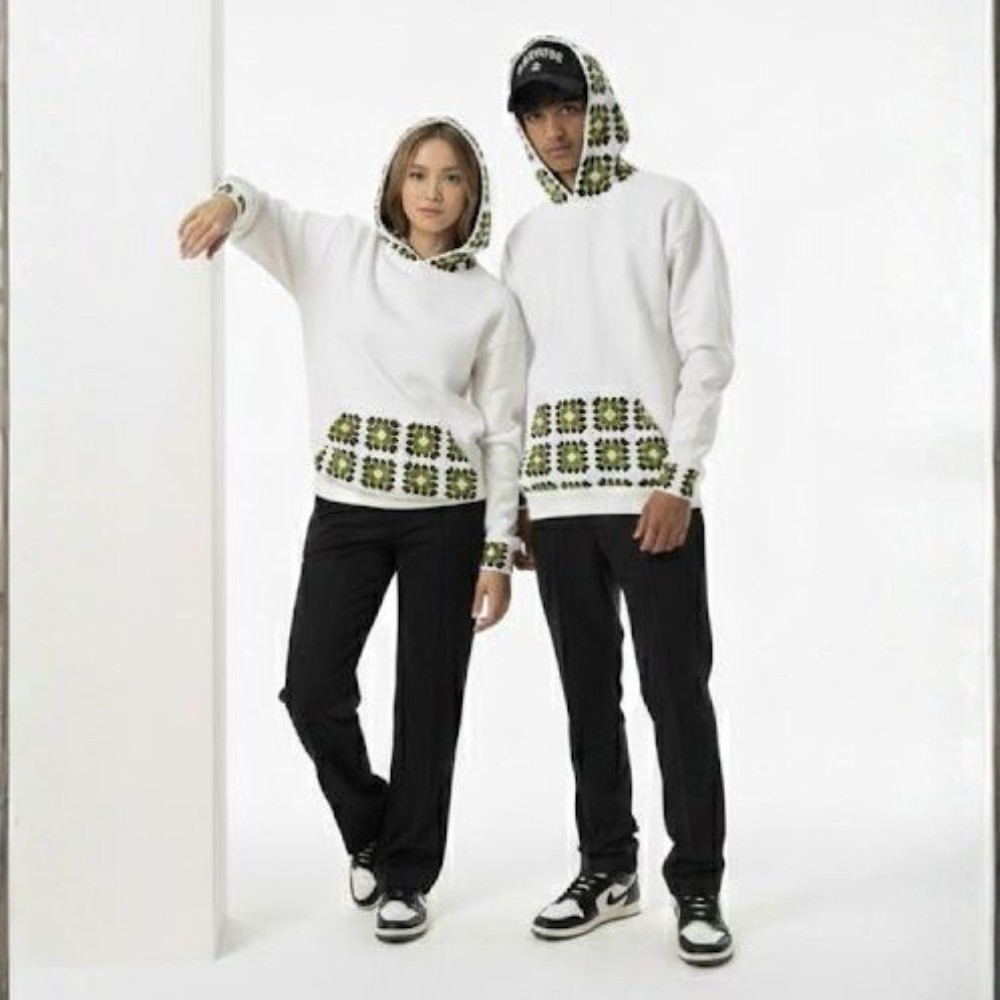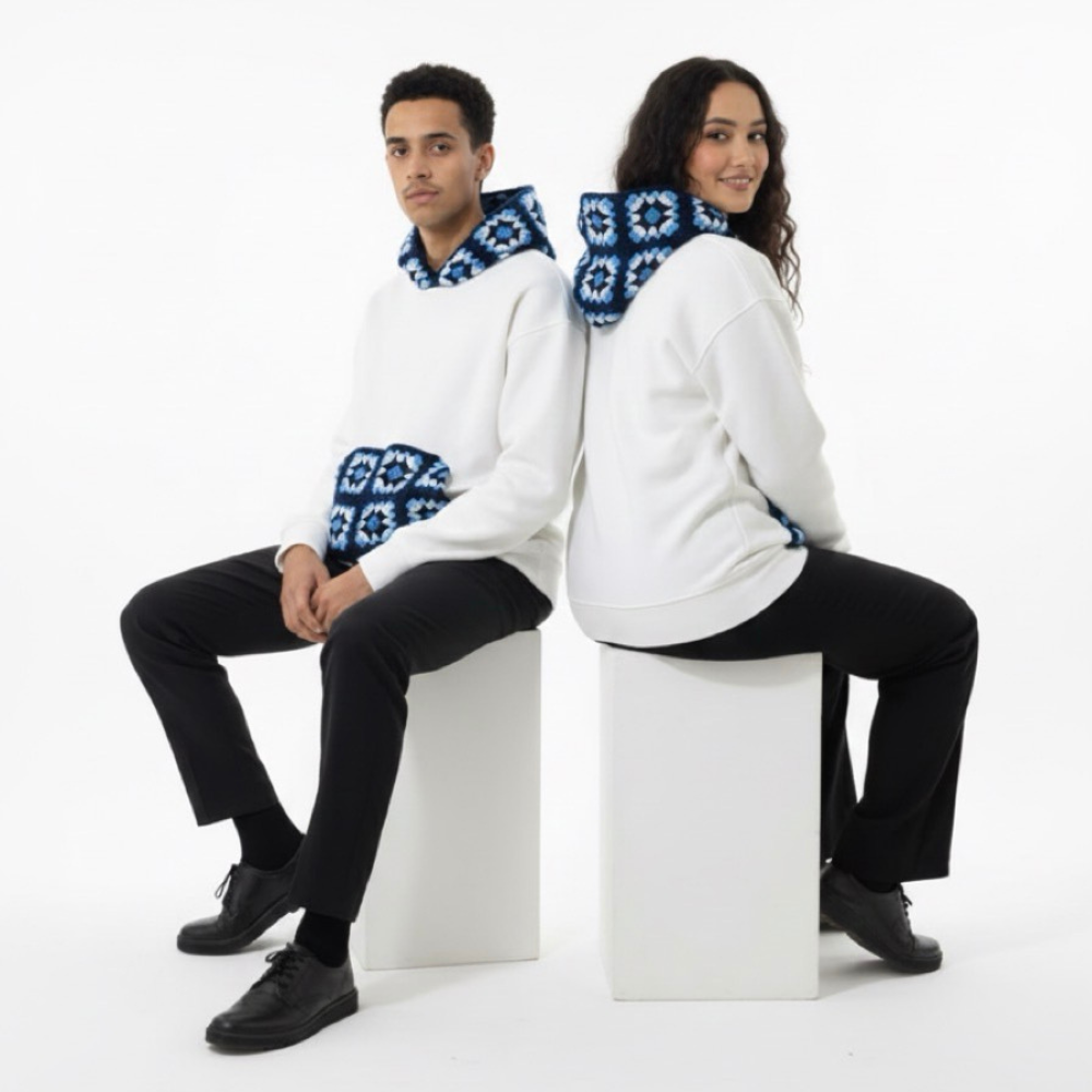 Ice Blue Crochet Hoodie (Ice Blue Shades + White)